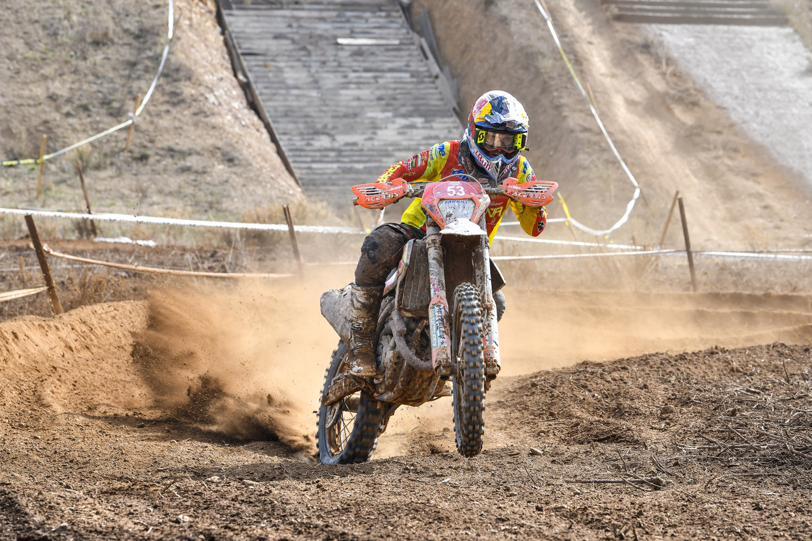 As now expected, Daniel Sanders showed his rivals the way to go for the fourth day running. Untouchable, taking seven test wins from seven, he puts himself six minutes and twenty-five seconds clear of Great Britain’s Danny McCanney – TM. Delivering his best result of the week, Steward Baylor moves up to third overall — passing Italy’s Rudi Moroni – KTM — thanks to the third fastest time on the day.